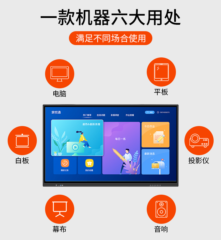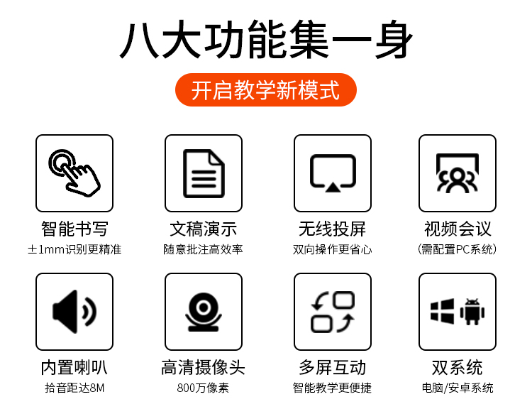 無(wú)線傳屏、紅外觸摸書(shū)寫(xiě)、免費(fèi)視頻會(huì)議、Android8.0&Win10雙系統(tǒng)